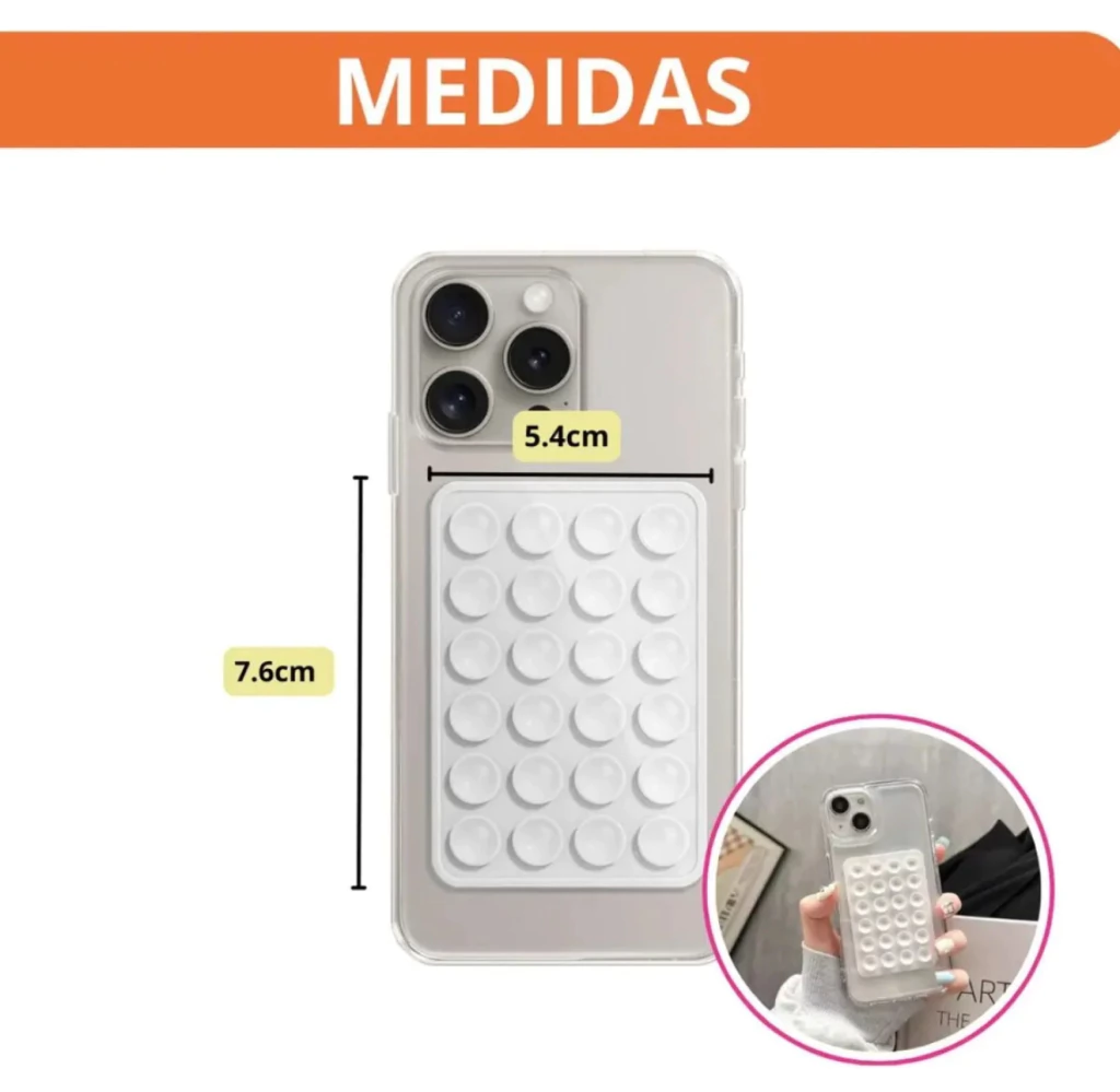 • Reutilizable: Las ventosas se pueden lavar con agua y secar para restaurar la adhesión y permitir su reutilización.